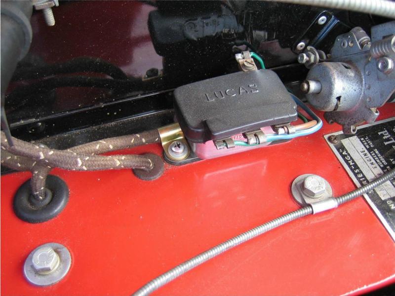 The "kit" would also have included a small wiring sub-harness, as these wires are not woven into the original wiring harness. That FTP sub-harness is also not physically documented (aside from the schematic). It should have been specific for MGA, to have the matching woven cloth cover. Physical location for the relay may have been influenced by length of the supplied sub-harness branches.