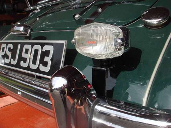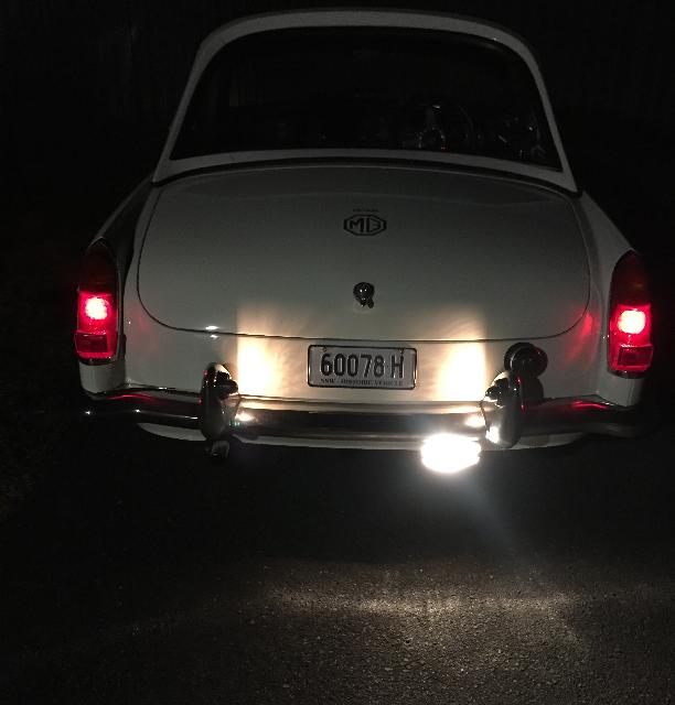 Back-up lights on autos were not mandatory until the late sixties in the US, so none of the MGAs (or early MGBs) ever had them as standard. If you wanted a back-up lamp you had to have the dealer install it. For the British cars, Lucas sold the L494 lamp, a monster of an accessory -- about as big as a fog lamp but a little more "formal" looking. They were sold for Rolls-Royce, Jaguars, Healeys, Morgans, MGs and even Vespa scooters (as a headlamp!).