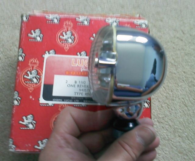There was a matching Lucas pull-switch (#31696), similar to the black knob pull-switches of the time and the ones found on the MGA dash, with a little illuminated white dot in the center to let you know that the reverse lamp was "on."