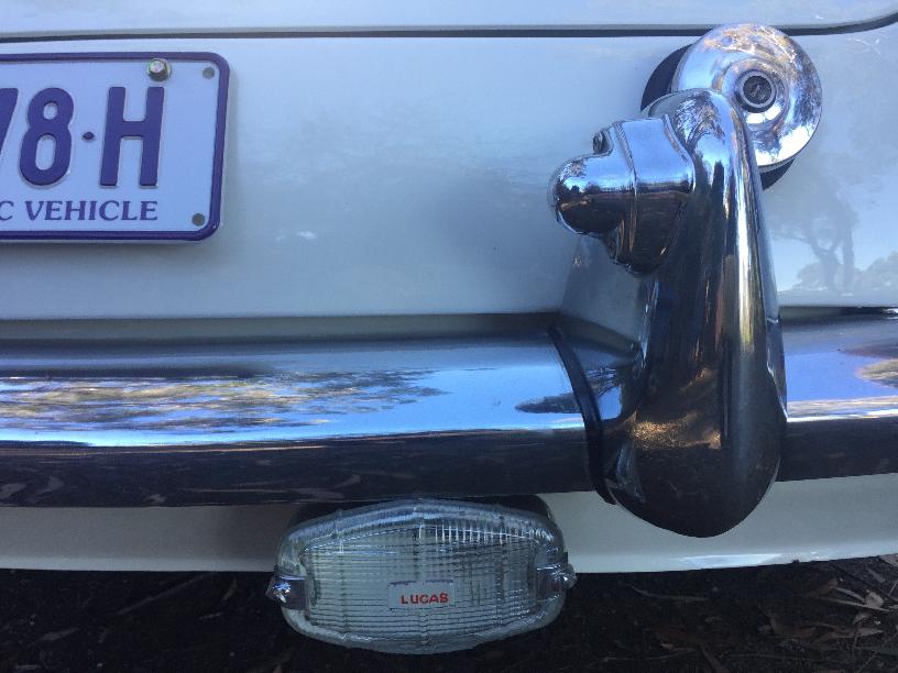 I finally found one with an original MGA bracket which attaches between the inner rear bumper-spring and bumper, through the right center bolt. Looks a little big but it definitely fits perfectly".