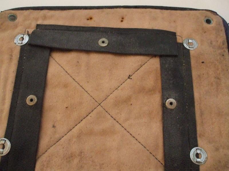 The Kingsbury Radiator Muffette (sometimes referred to as Grille Muff) is a rare factory accessory used to cover the radiator grill in cold weather conditions. It was most often seen on Alpine Rally cars but was also available on any MGA as a dealer option. There was a slightly smaller size (different part number) made for the MGA 1600-MK-II with the modified grille. The small pegs would attach to the grille slats with no drilling required and could be left in place. The central cover flap could be rolled back and secured with snaps in various positions to adjust air flow. It was made by Latex Cushion Company on Kingsbury Road in Birmingham, England. This one appeared an eBay in November 2007.