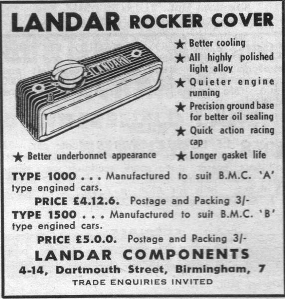 Landar was a kit car manufacturer back in the day. An alloy rocker cover was produced specifically for use on a "Landar" kit car. This rear engined Mini derived racing car (A-series engine) was produced in small numbers towards the end of the 1960's. This rocker cover fits a B-series engine, so they either graduated to larger engines or also made accessory parts for other cars. This piece would be rather rare.