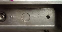 And the plot thickens when another one very similar is found with no "Moss" name inside. This one has a hole where the separate "MG" emblem is screwed on rather than cast in place. Also notice method of attachemnt for the oil filler cap, as the standard cap will not fit this cover. This appears to be a vintage Ford oil cap. When there is no valve cover vent port you will need a vented oil cap, the tall one with horse hair inside to serve as air intake filter.