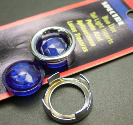 Prior to 1950 tail light lenses and the blue dot jewel were commonly glass. To install the blue dot requires making a hole in the lens about an inch in diameter. For a glass lens that would require careful grinding to avoid cracking the glass. More recent lenses and blue dot jewels may be plastic. Cutting a plastic lens may be done with a drill or a hole saw, being careful not not overheat and melt the plastic. Today the blue dots are still commonly available accessory items. They seem to be installed on nearly every street rod in California, but not so common on MGAs.