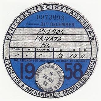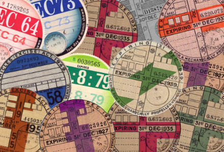 After October 1, 2014 it is no longer required to display a valid tax disc for your car in England. As such, the older tax disc has become an accessory item, and at least one entrepreneur has stepped up to reproduce vintage tax discs. See here: www.poplargreg.com