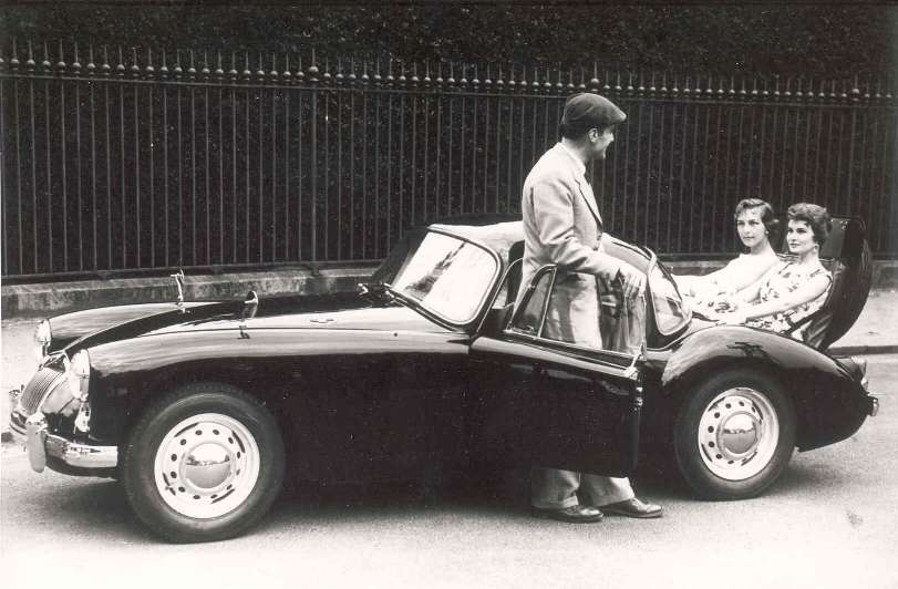 This odd period style accessory is a "four-seater" conversion introduced in 1957 by Scottish MG Distributors John Gibson & Sons Ltd. of Edinburgh. They made it for an local farmer, and the car's registration number was RSF 456. The spare tire goes on the boot lid. The passengers' feet go through an enlarged hole in the rear bulkhead panel. If you're going to put two people in the boot of the MGA, they would surely neeed to be very friendly (or very small). Could be a wild ride though.