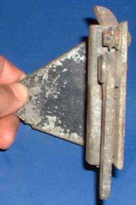 If your boot latch pin is broken, then if you were REAL lucky you might be able to affect release, without having to modify anything. I am attaching another picture of the interface of the latch with the striker. Notice the angle of the hook surface on the tip of the latch pin, not parallel to the direction of travel of the pin. This angle makes for an over-center type of latch engagement which will never be able to vibrate loose during road travel. However, this also means that the boot lid has to be depressed some significant amount (1/16 to 1/8 inch) to affect release. The curved side of the tip allows depression of the pin by the striker when you slam the lid to close it.