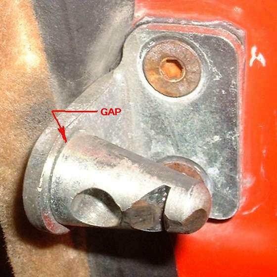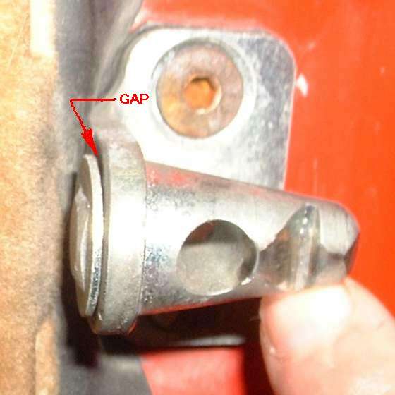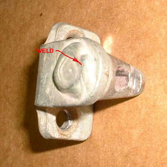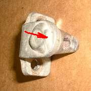 This issue has likely existed since original production of the MGA. The door latch striker is made of two pieces, the striker pin with a pilot diameter (or square) on the tail end, and a mounting bracket with a hole in it. The pin is attached to the bracket by swagging, like a big rivet. I don't have exact details of the original part, but for replacement parts there have been a couple of variations on the theme in past years. The one pictured here has a third piece in the assembly, a thin flat washer with a square hole to match a square shank on the pin, but it doesn't seem to help. Problem is that after some time in service the swaged joint can work loose allowing the pin to wiggle a bit, and once it starts to move it only gets worse. This may lead to difficulty latching the door, a latch that may pop open with a good bump in the road, and a door that may rattle with a rough road.