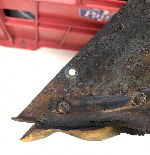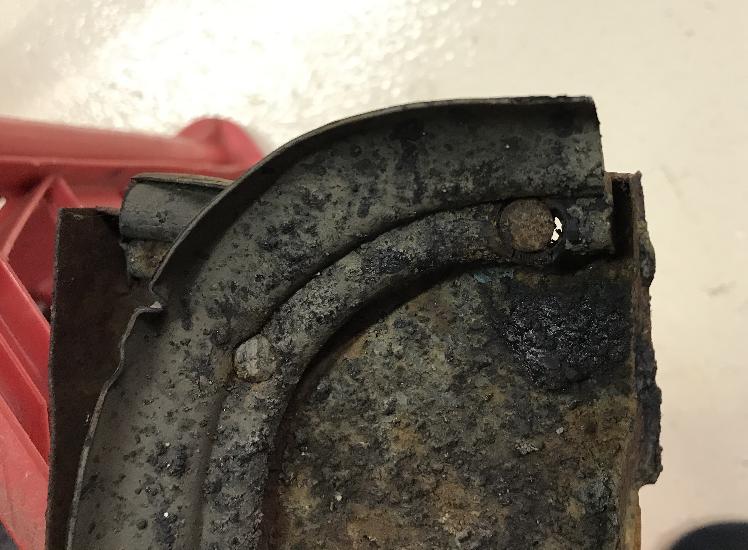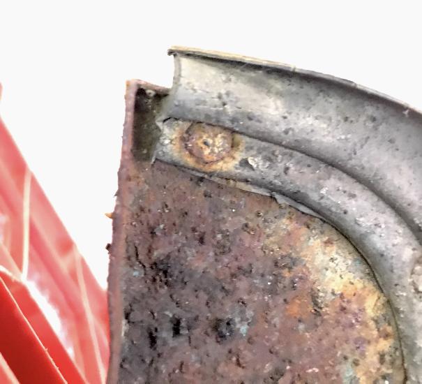 Photo at right (courtesy of M.J. Moore in Cheshire, UK) is an original pair of panels with seals installed. Rivets are wrong way around. Rivet head should be on the rubber, splayed legs on the sheet metal side, and no washer.