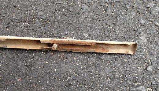 Thanks to Glenn Johnson for this picture. This is the current issue lower body trim strip and T-bolt from Moss Motors. (Click for larger image).
