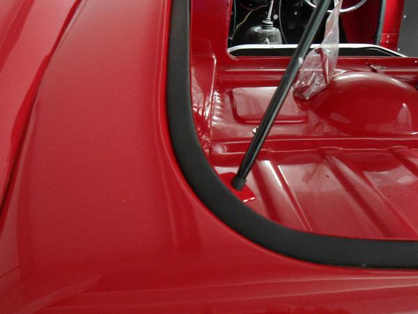 Anyone who has whacked their head on the open MGA boot lid may wish it might be held a little higher when it is propped open. My solution to this problem was cheap, quick and simple. The prop rod normally passes through the retainer bracket on the edge of the body opening and seats on the boot floor about four inches lower. I simply installed a 3/8" bolt and a pair of hex nuts in the bracket to provide a new nest for the tip of the rod on top of the bracket. The two nuts are jammed up tight with the bolt head on the bottom and the tip of the bolt slightly below the top of the upper hex nut. The upper hex nut fits in just underneath the skeleton of the boot lid when closed.