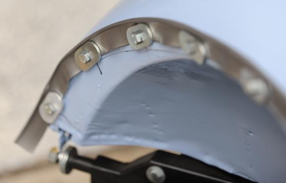 Once the front end of the piping is finished, work progressively along the rear fender joint as described above for the front fender. When approaching the back you can loosen the last few bolts as required to finish the run. Final alignment may again call for a slight nudge at the back end of the fender as the last few bolts are secured.