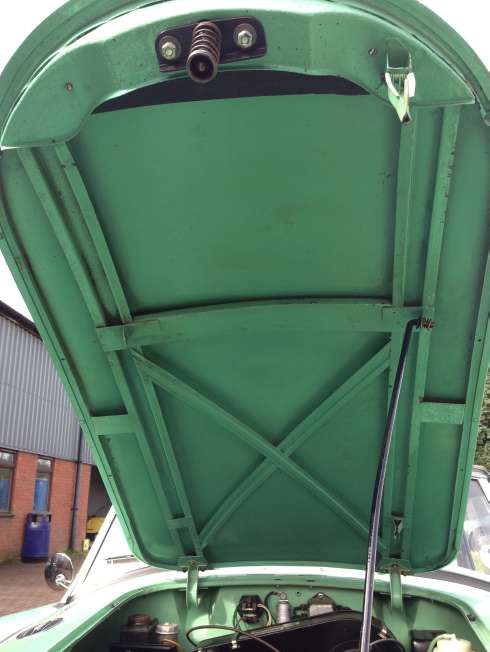 There was a one time design change for the MGA bonnet in mid production. At first glance it is very subtle, but it is easy to spot when you know what it looks like. When the Twin Cam model was introduced in July 1958 the crown height of the bonnet was increased slightly to clear the taller valve covers. This design change was incorporated into the pushrod engine cars as well to use a common bonnet.