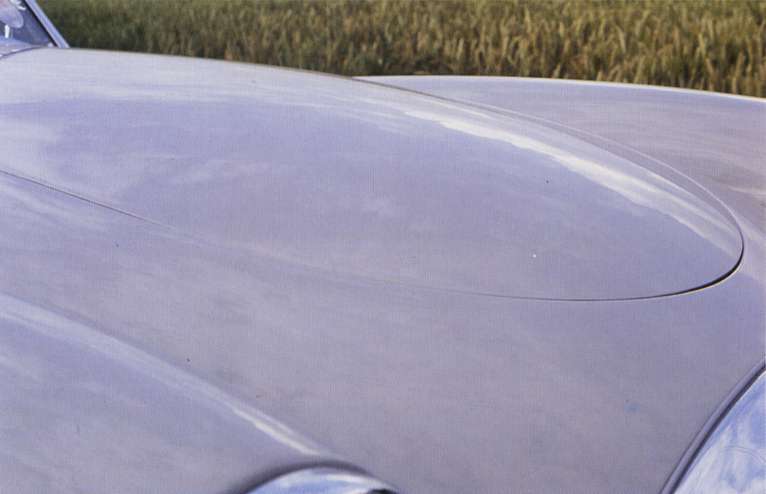 There is a wood batten with felt (originally) or cork (restoration work) top layer in the front edge of the bonnet to serve as support for the aluminum skin while closing and latching the bonnet. This piece is thicker with the later bonnet profile.