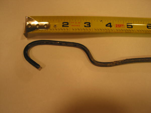 "I removed the boot release rod and took some photos. The rod is 36.5 inches long and the diameter of the rod is 5/32 of an inch. The 90 degree bend in the rod faces down in the boot, where it attaches with a cotter pin to the linkage for the latch".