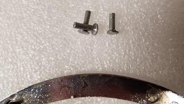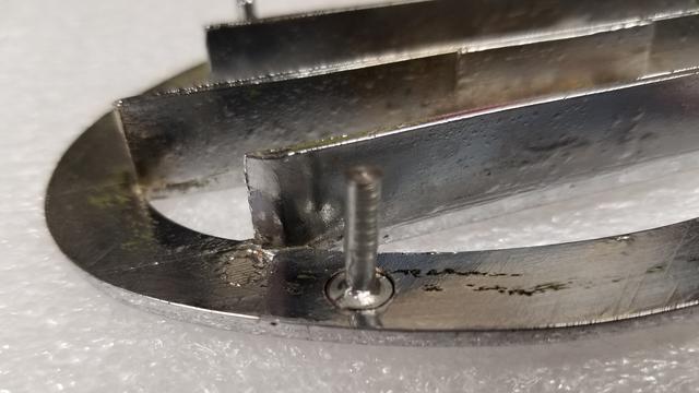 "I have played around a bit with the vents and I think I got it. I have the original vents so I want to reuse them, but yes, I have some broken pins. Basil had a great idea so I used it as my base, a roofing nail. I started out drilling an 1/8" hole where the post is with a bullet drill bit. That got me just a fraction below where the stud sticks out. Then I used a 1/4" flat drill bit (the drill bit has no point and cuts flush). I only drilled in about 1/16", just a bit deeper than the thickness of the nail head. I put the nail in a drill and turned it against a file until it fit snug in the hole. The nail sits just a fraction below the surface of the emblem thickness. The plan will be to JB Weld the nail to the vent, then sand smooth. I did not attach the nail to the unit yet as I want to send the vents out to be re-chromed. When they come back I will attach, but I see no reason why the JB Weld epoxy will not work. We will see after I get the vents rechromed".