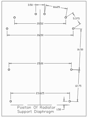 Body panels may vary +/-1/4-inch in this area. For instance, distance of the radiator support bracket to the first buffer is 1-1/4" on one side an 1-3/4" on the other side. If you locate these buffers within 1/4" of the specified dimensions no one can argue.