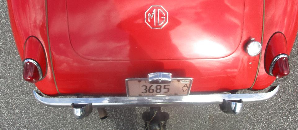The main body cowling has a little more curvature, about 1 inch total over the width between the fender piping. The tail of the fenders then bulges rearward about 3/4 inch aft of the piping. Where the bumper curls at the ends it generally comes within 1 inch of the fenders. During late production of MGA MK-II model a pair of tube spacers were added to the bumper mount forgings to move the whole bumper assembly back a bit farther from the body.