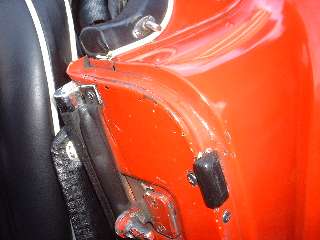 The MGA With An Attitude SHUT FACE PLATES, 1600-MK-II -- BD-130 In May 1961 at Car No. 101292, the shut face plate was changed to incorporate an inboard vertical tab and a drip/drain trough in the curved top surface. This was accompanied by a change of the door seal finisher chrome trim piece which then stopped short of running over top of the shut face panel. (This photo shows incorrect door seal).