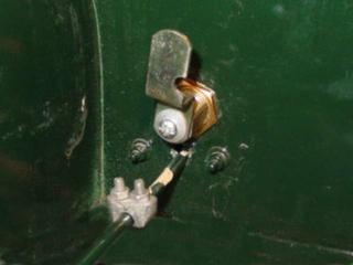 The lock lever is then notched to fit round the operating rod and the U-clamp (6mm inside diameter) bolted in place (see photo). The exact positioning of the clamp is trial and error. It is important that a cranked locking lever is used as shown in the fist photo. This allows sufficient movement of the clamp in the unlocked position, otherwise, if a straight lever was used, the clamp would have to be placed closer to the bulkhead and would hit it when the opening rod was pulled.