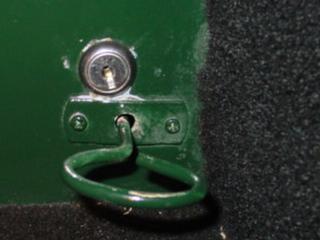 All that is required is an MGB-style glove box lock and a small U-clamp. I did not even have to go to Moss for the lock; my local iron monger keeps them in stock.