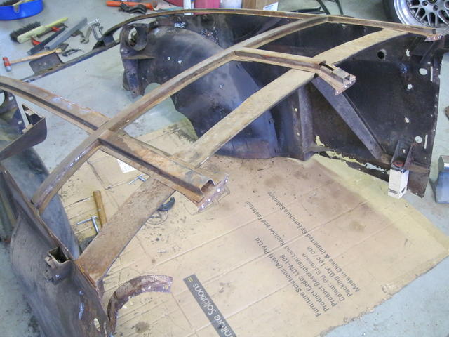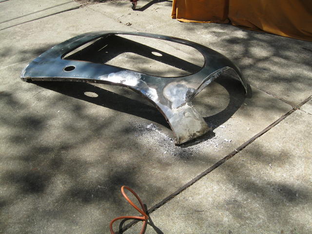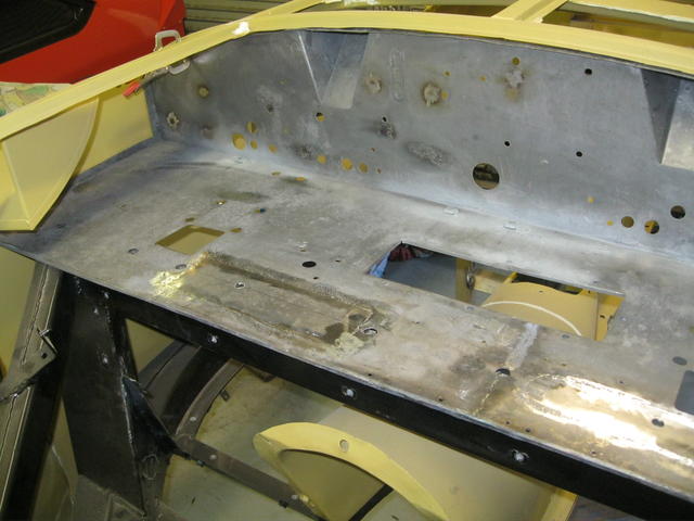 panel. To make it easier, once you drill out the spot welds on the back of each of the top hat reinforcements (at the back of the shroud above where the instrument panel goes), bend them down so they clear the shroud. You don't need to remove them or cut the front dash pad mounting. You need to drill out the spot welds on the side of the shroud around the wing/guard/fender on each side. You don't need to drill out the welds for the firewall. I needed to for my repairs and it wasn't that hard. You need to remove the spot welds in the bonnet/hood channel. And then you're ready for the front.