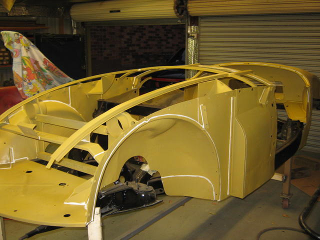 "Once it is time to assemble the new shroud, I'd ensure any holes caused by drilling out the spot welds underneath on the top hat sections and wheel arches are MIGed up and ground off since they won't necessarily line up with the holes in your new shroud. I'd make sure everything has a coat of primer and then put the bits together. You can use the spot weld drill to clean up the metal on the panel beneath prior to plug welding. I even do this with weld through primer since it never seems to weld all that well well in spite of the name. To grind off the plug welds in the bonnet channel section takes a little care. A 10 mm (1/2 in) belt sander makes this a bit easier. Once it's all together I use 2-pac seam sealant to seal all the lap joins. Its got Zylene Phosphate in it and supposedly uses capillary action to help get into the lap join. My form of snake oil I guess!
