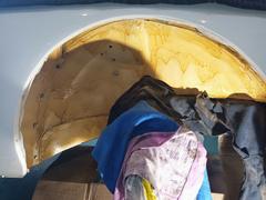 "I didn't want to paint the wheel wells of my car with any truck bed liner or gravel guard, etc since they were originally body color. But with a white car, it gets dirty very quickly, plus stone chips thrown by the wheels will quickly develop rust spots. Moss makes a wheel well liner for the MGB (which I have in my MGB) and it is an excellent product. But, unfortunately, nothing for the MGA. I thought of finding some wheel well liners from a scrapped car that may fit the MGA with little modification. So, here's what I came up with.