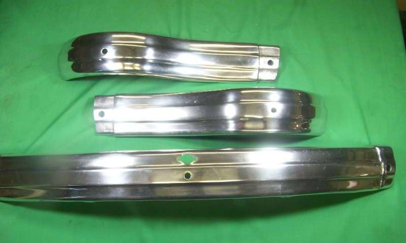 Below are pictures of a cast aluminum bumper from eBay in October 2012. This may be as nice as it gets, having been polished, but still obviously aluminum and not matching chrome overriders.