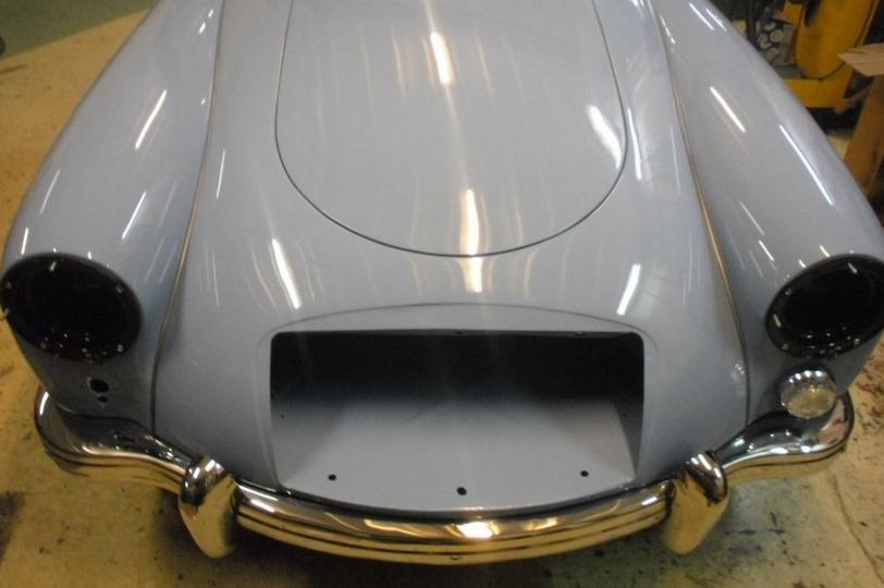 Pictures of the blue car below show the polished stainless steel bumpers mounted on a customer's car. Something to mention for sure is that the center hole for the starting handle (hand crank) will only be provided if you request it at time of order.