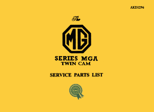 The MG Series MGA TWIN CAM Service Parts List