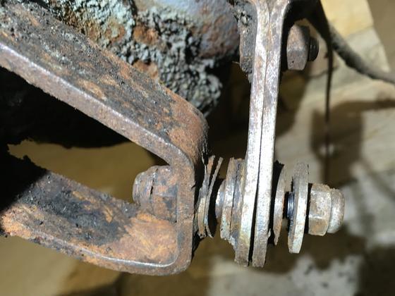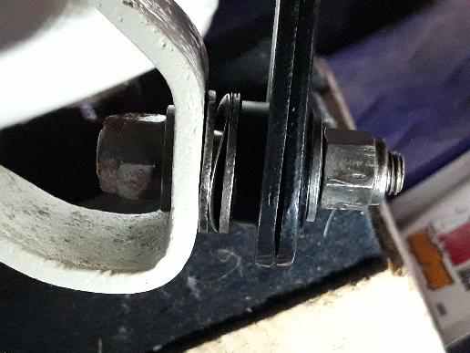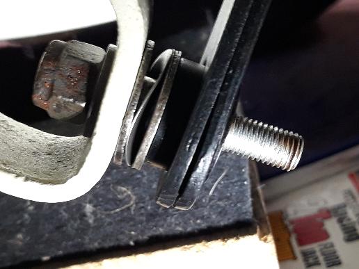 bush first if this is a replacement). Test fit the shoulder stud into the bush to assure it will move freely. Put the two halves of the arm together with the cable trunnion in between, and secure it with the 1/4" bolt, lockwasher and hex nut. The welded bracket on the axle will have a female thread (which may or may not be required). Screw the double threaded stud fully into the bracket (until it hits the shoulder). Then screw the 3/8" lock nut onto it to jam the stud tightly in the bracket so it will not move. Slip a large bore flat washer over the stud, followed by the thin wave washer, and another flat washer. Then install the arm followed by the small bore flat washer and 5/16" lock nut. When fully tightened, the anti-rattle washer should be mostly compressed (nearly flat), but the arm should swing freely with finger force.