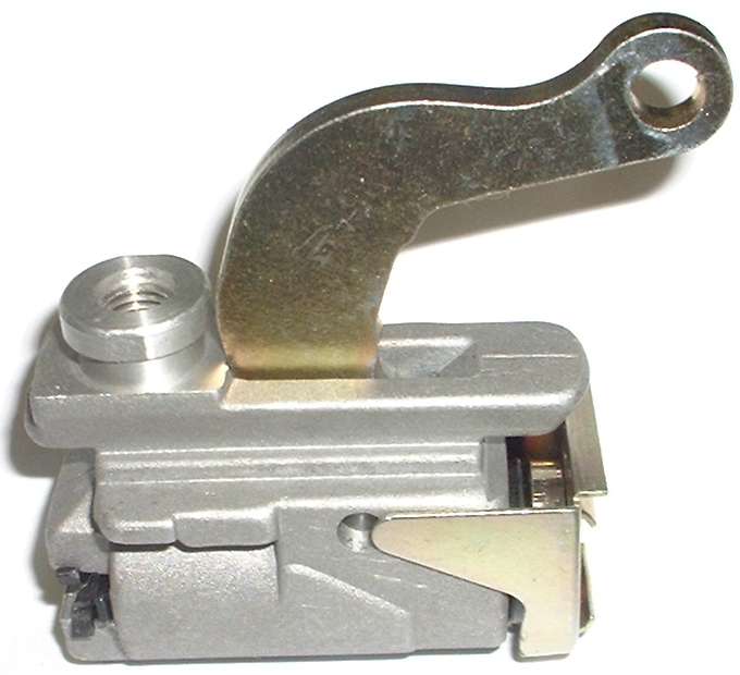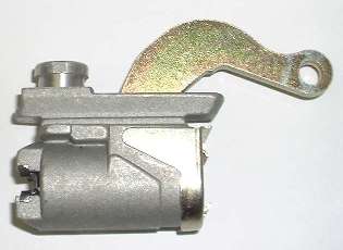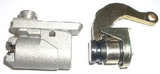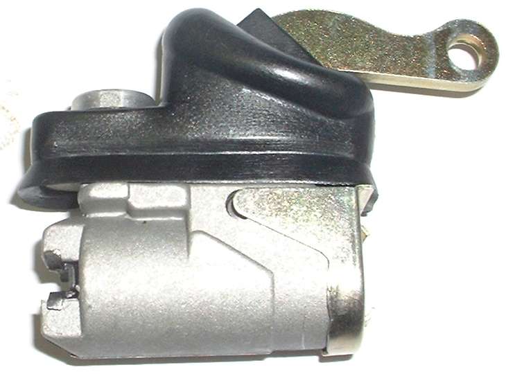 The lever in this slave cylinder is nested between two steel pistons, and all is in the aluminum housing. The outer piston has an O-ring to keep dirt and water out of the bore when it is retracted. When extended the piston can move out about 1/4 inch. This moves the O-ring beyond the end of the bore leaving the bore exposed to the environment. See O-ring above right. (Click for larger images).