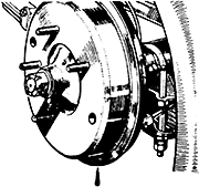 Small rubber caps (Moss 031-300) are available to cover bleed screws, and are an inexpensive and convenient way to keep dirt out of the bleeders. Wash the back plates and any other gritty areas before anything is disassembled for service. Remove the drums and clean the parts with brake cleaner or soap and hot water. Do not use an air blast to clean brake assemblies. The asbestos particles are a proven carcinogen. Do not handle the clean parts with dirty hands.