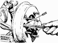Turn the adjusters clockwise until the shoes come up tight against the brake drums. Then turn back one notch (or two if necessary) until the brake drum turns freely. Find two adjusters at each wheel for MGA front drum brakes. Find only one adjuster for MGA rear drum brakes.
