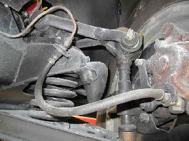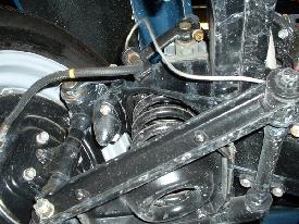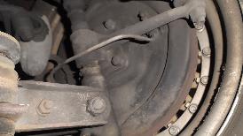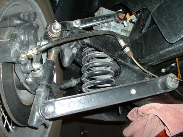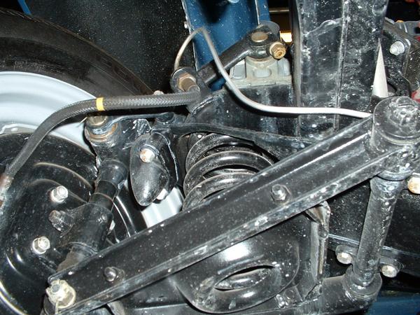 The photo at left comes from R J Brown in Colorado, USA. This shows a 1500 frame with MGB brake caliper, and using the original 1500 metal pipe and hose. Notice the MGB caliper does not use the banjo fitting.