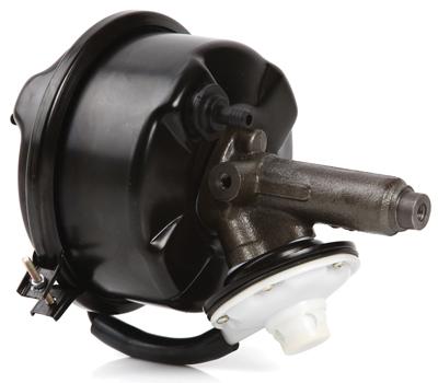 The most common type of booster unit used for the MGA is the remote vacuum powered booster. This does not connect directly to the brake pedal. It is installed downstream from the master cylinder, using fluid pressure output from the master cylinder to trigger the power boost function. It uses fluid only from the original master cylinder reservoir, so no additional reservoir is required.