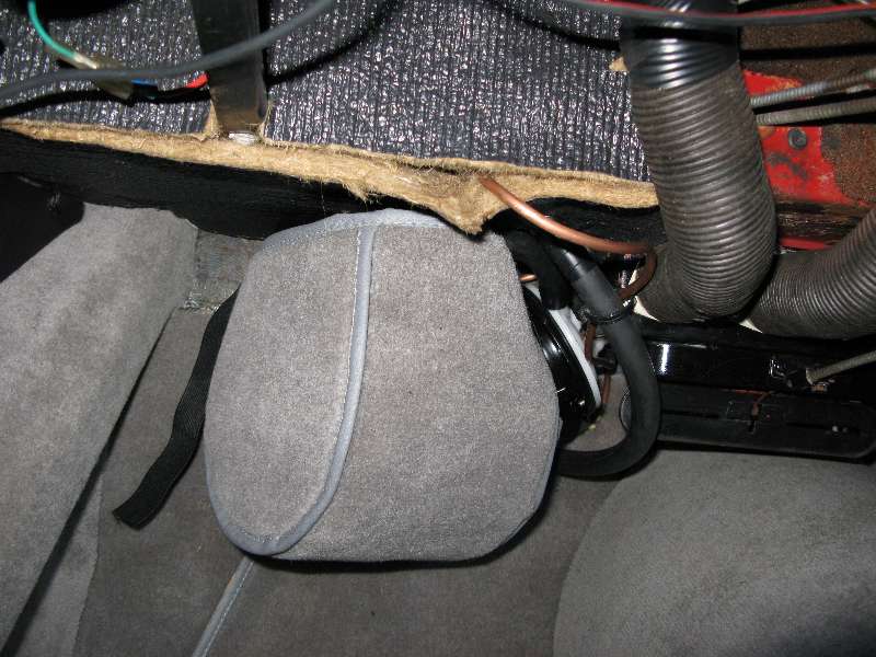 This one is installed in the passenger foot well of a RHD Coupe (notice the correct the gray carpet). Nice job with the carpet cover, but not my choice of location. My passenger would likely be complaining of the obstruction of kick space.