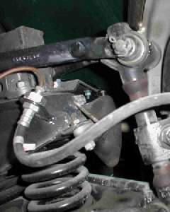 Where the flex hose connects to the steel line there is a welded bracket on the MGA frame (back of the coil spring mount area). For the 1500 this has a large hole. For the 1600 this has a smaller hole and a steel clip called Locking Plate. The locking plate has a hex hole to grip the hose end fitting and prevent rotation of the hose (strain relief). You may need to modify the frame bracket accordingly. You may need to grind the bracket narrower to match the locking plate, and tack weld a narrow washer inside to reduce the hole size. Alternative is to cut off the bracket and weld on a new one to suit the application.