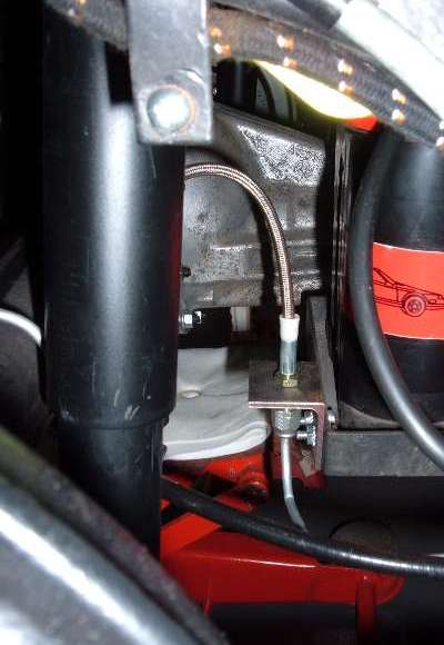 MGB rear brake hose (braided) to match the front MGB braided lines that come in the kit. Please note- the MGB hose is shorter and since the car already has a 12V battery upgrade, we altered the battery tray to come closer to the rear axle- off this we used a small L shape bracket of 1.5 inch by 1.5 inch bolted to the back with a hole drilled in it to have the brake line fit through. The Tee fitting was also from the MGB banjo axle- the steel brake lines were new, but duplicates of the MGB banjo style since the backing plates are MGB style. (pictures available)