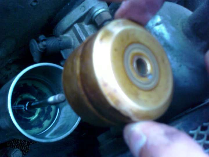 "Then I checked the float, that copper piece floating in the fuel chamber. It was rather dirty and tried to clean it a little with gasoline (available in the chamber) and an old rag. I've being told that sometimes this float got drilled somehow and when they get filled with gasoline they sink, so the float valve never could get pressed by them.