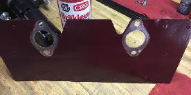 There is a bit of contention in one statement above. I am of the opinion that the intake manifold and heat shield were painted separately and installed later along with the exhaust manifold and carburetors. If the intake manifold and heat shield were painted in assembly with the engine, then it would be difficult to paint the left side of the engine, and the parts would have to be removed later to install the unpainted exhaust manifold. Intake manifold was likely painted rear face down with the front faces and ports masked, painted red all the way around. Heat shield was likely painted back side down, only sprayed red on the front side.