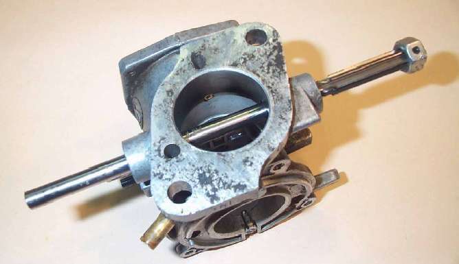 When the shaft journal is reamed through large enough to install sleeve bushings, the bushings must be carefully installed flush with the inside diameter of the carburetor throat to prevent blow by when the throttle plate is closed. One way to accomplish this is to press the bushing slightly into the throat, then go inside the throat with a porting grinder to grind the exposed end of the bushing back flush with the throat.