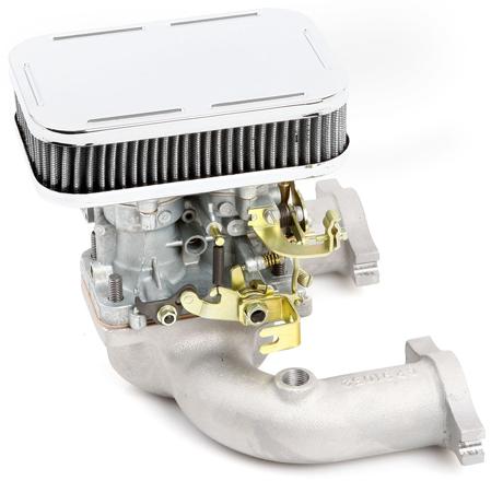 When a Weber downdraft carburetor is installed in MGA or MGB prior to 1964, it is simple to connect the valve cover inlet vent to the air cleaner, and leave the draft pipe on the front tappet cover in place. Crankcase ventilation will work as original, pulling air in via the air cleaner and expelling crankcase fumes out the draft pipe. There will be no vapor recovery or anti-run-on (as original).