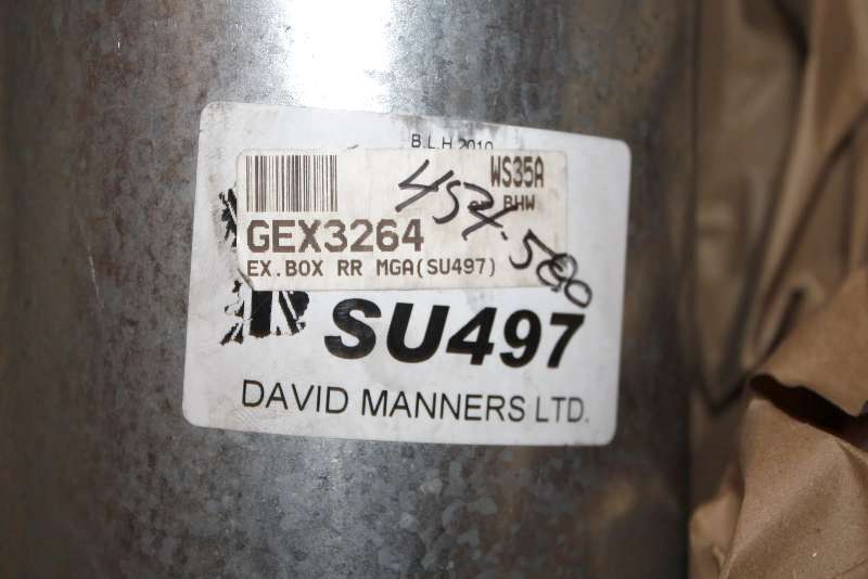 The label on the new muffler, showing the original UK supplier (David Manners).