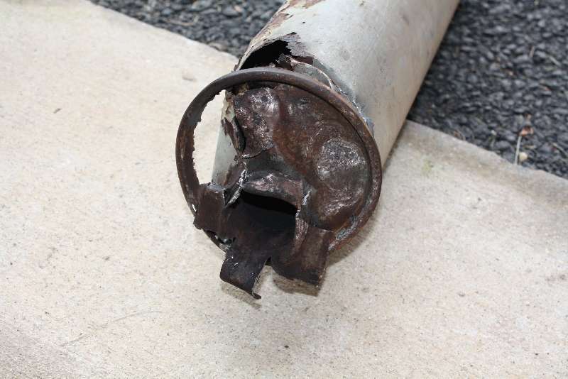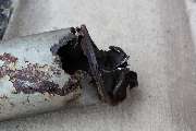 The lifeless carcass of my enemy showing the banana peel effect on the pipe. I think you can see the marks from the hammer.