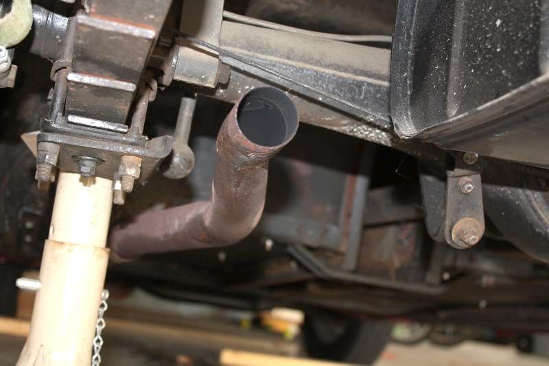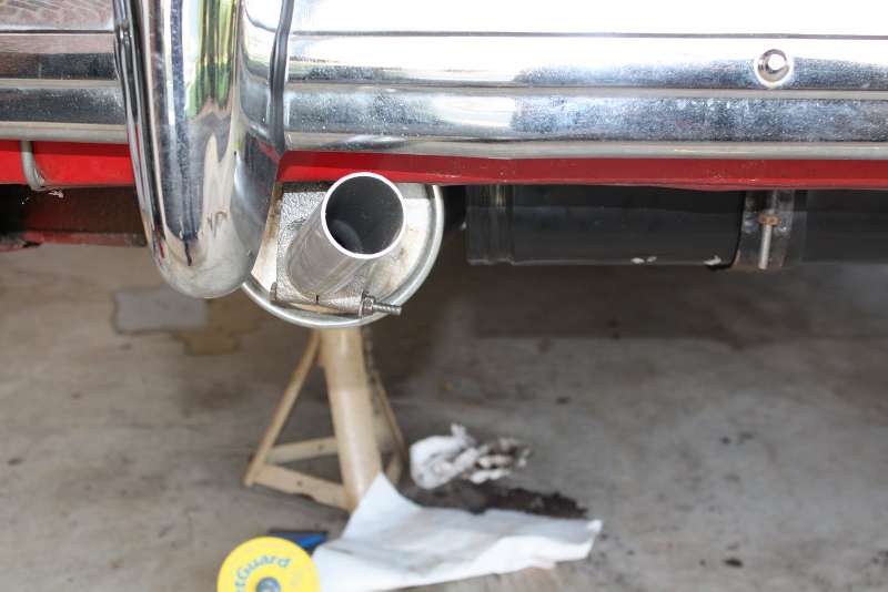 The new muffler mounted with the tail pipe at about the 2 o'clock position as it seems it should be according to the MGAGuru.
