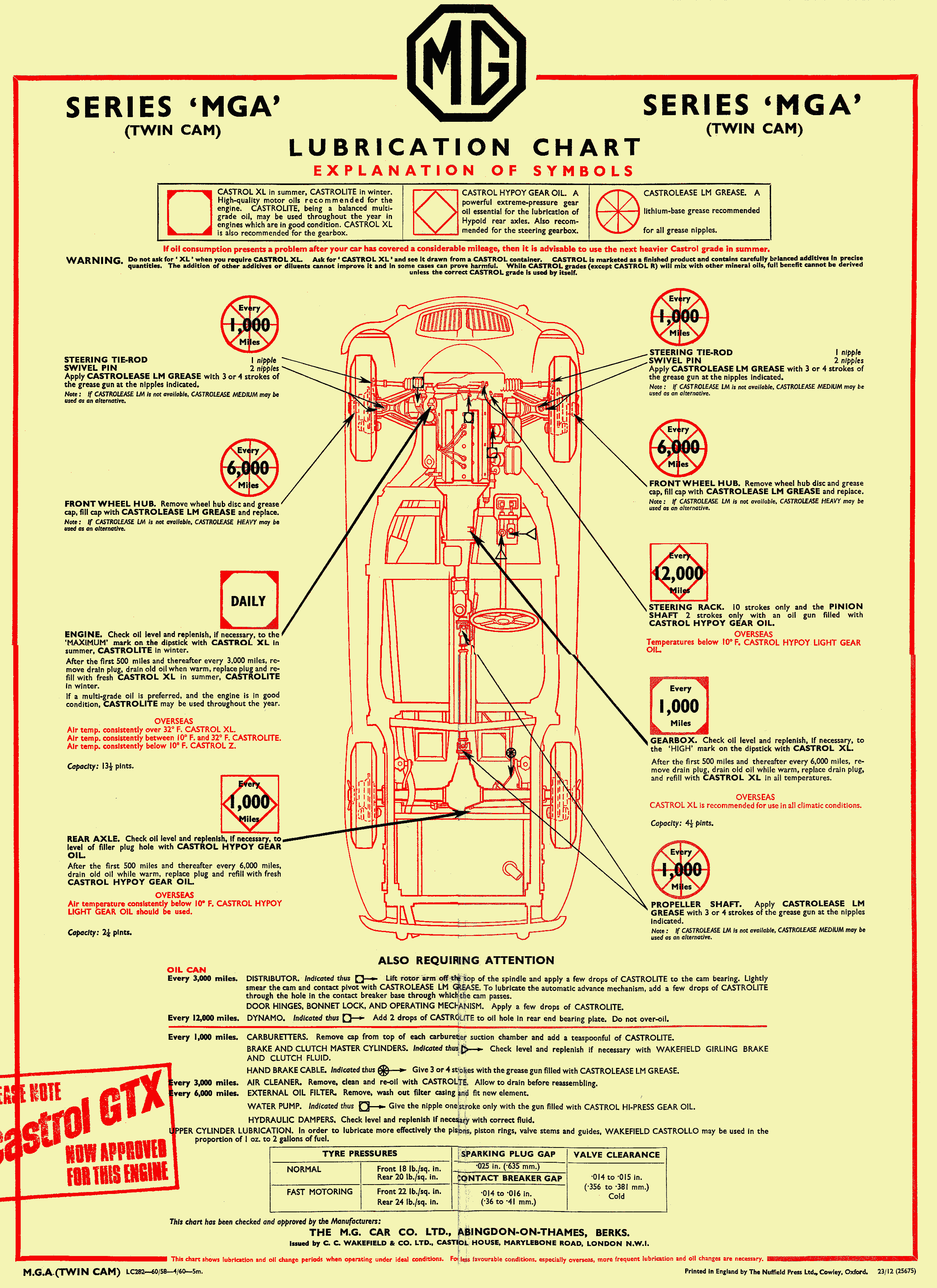 LUBRICATION CHART For MGA Twin Cam - CF-105A