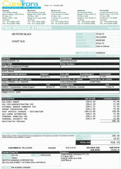 This is too important not to post. This is an example of shipping charges and taxes and tariffs you might incur with international shipping. Mind you this is NOT an invoice for the windscreen or the sea shipping charge from the supplier (which has already been paid).