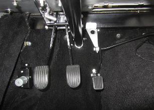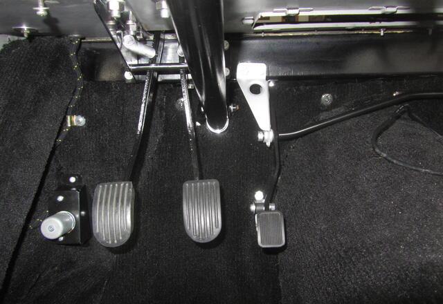 Notice that the accelerator pull cable is always on the right side of the car, as designed for the RHD model. The LHD accelerator pedal includes a long cross shaft going from the pedal across top of the tunnel to the right side of the car to pull the cable in the same position as the RHD cable. That may seem a bit strange, but that's just how it was done, back in the day.